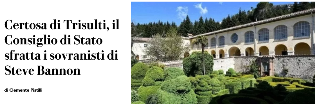 The Council of State of the Italian Republic has heard the appeal of the Ministry of Fine Arts and has ordered out the Dignitatis Humanae institute of Steve Banon from the monumental Trisulti Monastery. — Click the image above to read the breaking news in Italian.