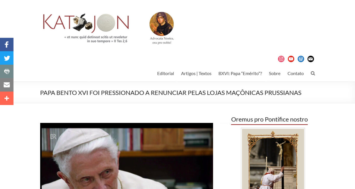 PAPA BENTO XVI FOI PRESSIONADO A RENUNCIAR PELAS LOJAS MAÇÔNICAS PRUSSIANAS