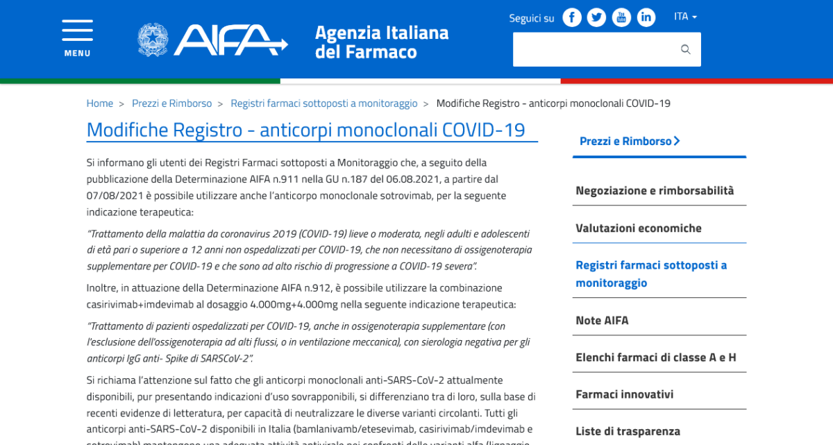 Queste terapie monclonali sintetiche sono sviluppate con plasma di pazienti VACCINATI e non di pazienti immunizzati naturalmente come da terapia del Dott. De Donno, per cui vi potrebbero essere comunque rischi per la salute!
