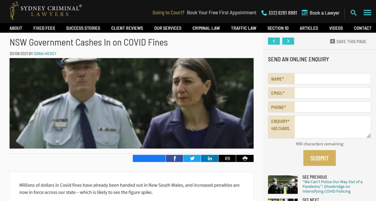 To understand how bad it is in Australia, its useful to read this article, below, from a criminal defense attorney about the systematic abuse of authority and Covid penalties against innocent Australians (Cick image to read):