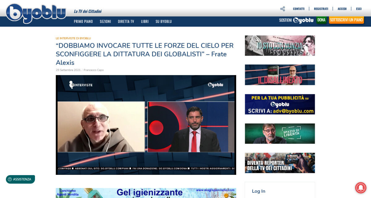 Br. Bugnolo, I’m sorry, but ByoBlu (like many others on the Internet less important and influencers than it, but which still create confusion and disinformation very useful to the System) belongs to the false opposition, which shamelessly speculates on today’s tragedies, in particular Covid19, Green Pass, mandate and vaccination poison killing, etc. The assistant commissioner (vice questore) of Rome, as a collaborator of Byo Blu, is also part of it. The only absolutely transparent 360° opposition is that of Francesco Carbone and his Associazione Governo del Popolo (Government of the People Association), which the official media (Rai, Mediaset, La7, Sky and the newspapers) and the aforementioned false opposition, have voluntarily ignored and continue to shamelessly ignore it, when he has accumulated a mountain of trials with which to arrest, try and condemn almost all political institutions, from the youngest politician to Mattarella, passing through Draghi. To achieve this Francesco Carbone (that Digos has tried twice to kill) needs the support of the Italians, who are however deliberately kept in the ignorance about his battle. Why? Because the Italians, like all the great masses of the world, are more or less corrupt sheep, but also because the false or controlled opposition (starting with Byo Blu) has shamelessly done everything to ignore him and make him ignored, when, for trials collected and contained in a large suitcase and his accusations vocally, clearly, directly directed to Mattarella, under the Quirinale on 15-16-17 June 2020, would have been on the front pages of print and television newspapers and not just once, but almost every day.