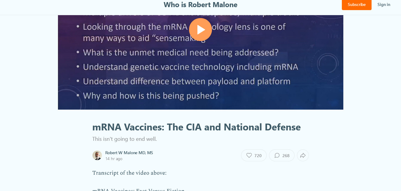 Editor’s Note: For the sake of open discussion, I post this long article by Dr. Robert Malone, who has a lot of inside knowledge about how the DeathVaxxes were ideated, developed, purposed etc.. What I find not credible in this account, is the apparent attempt to admit everything in the narrative but that the DeathVaxx was a bio-weapon intended to genocide humanity. But perhaps that is a level of knowledge which can only be obtained through inferential analysis and reading other sources to which Dr. Malone is not personally able to testify. — As someone who has studied ethics and moral philosophy, I can assure you that beyond a certain level of ignorance, one not only has to presume malice of aforethought, but it could not otherwise exist but by malice of aforethought.
