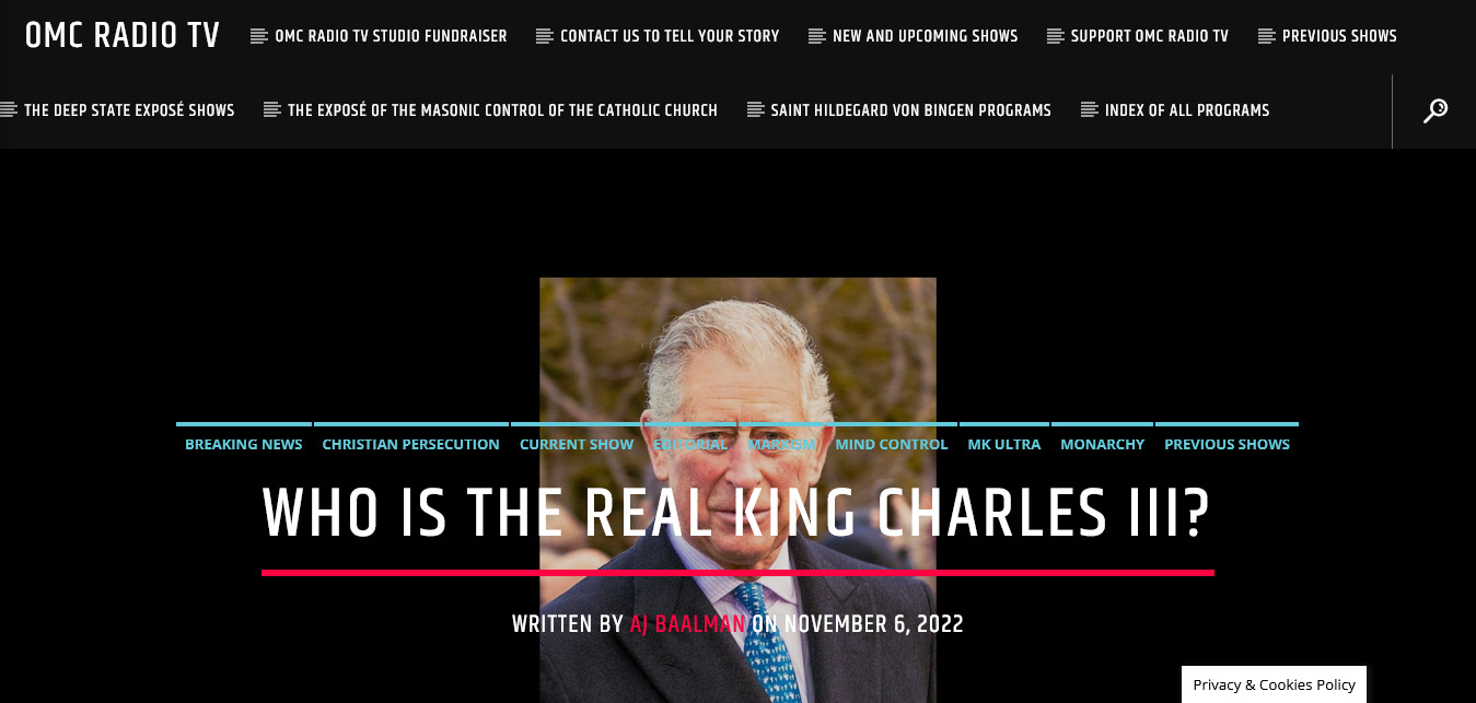 I simply cannot tolerate King Charles III for many valid reasons most of which you have outlined in another excellent OMC Radio TV programme.