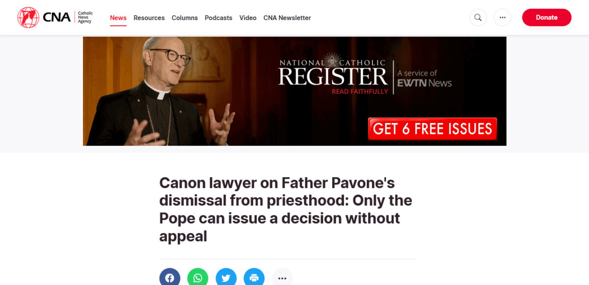 I met Fr. Pavone many years ago. He impressed me as a straight arrow, a decent man. If his language is strong these days … well, mine sometimes is as well. Not that I enjoy it but it comes out naturally when I see the outrages being committed everywhere all the time.