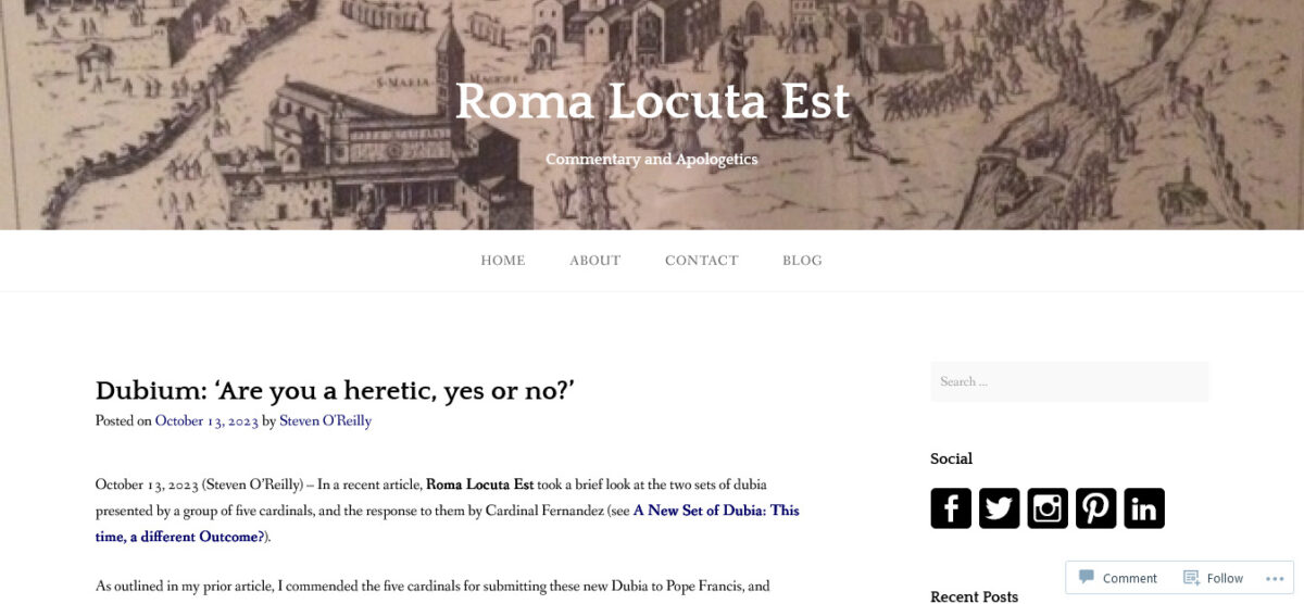 Editor’s Note: This is the same CIA agent who excoriated all those who said Benedict XVI was the pope until his death. And his behavior is one of the strongest proofs that Bergoglio was put in power by the CIA, because he devotes all his spare time to defending Bergoglio’s claim to power, from every possible angle, and with every kind of sophistic argumentation, with a heavy icing of name calling and innuendo. — That he calls his blog, “Rome has spoken”, when he is not Rome, nor in Rome, says a lot.