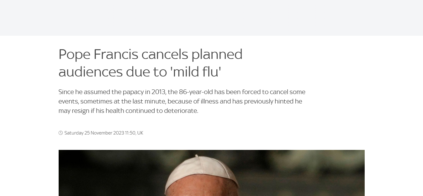 Editor’s Note: This is the second cancellation this month, which seems to indicate that Bergoglio’s immune system is weakening. If he really took 3x doses of the Sputnik DeathVaxx, then his immune system should be nearly shot by now.