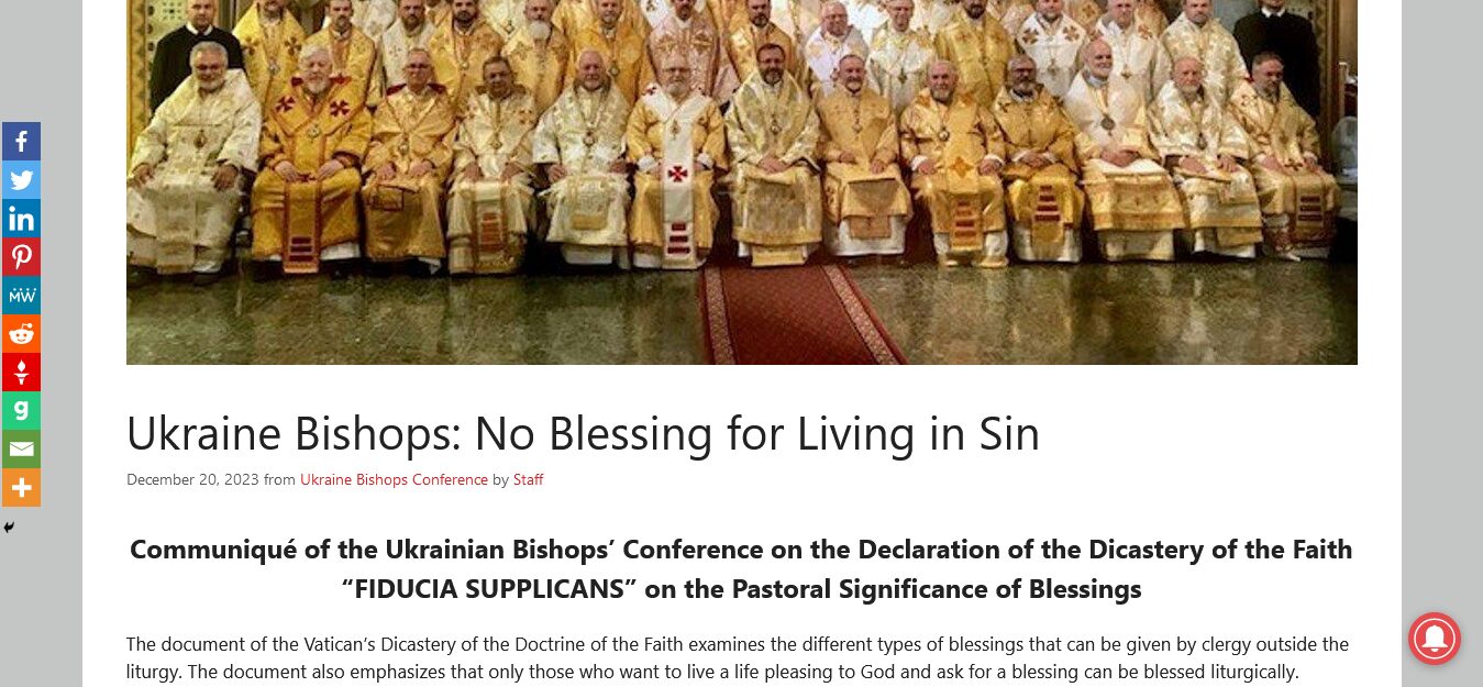 With sincere brotherly love, and with due respect, we address Pope Francis, who – by allowing the blessing of couples in an irregular situation and same-sex couples – “does not walk uprightly according to the truth of the Gospel” (see Gal. 2:14), to borrow the words with which Saint Paul the Apostle publicly admonished the first Pope in Antioch. Therefore, in the spirit of episcopal collegiality, we ask Pope Francis to revoke the permission to bless couples in an irregular situation and same-sex couples, so that the Catholic Church may shine clearly as the “pillar and ground of the truth” (1 Tim 3:15) for all those who sincerely seek to know the will of God and, by fulfilling it, to attain eternal life.