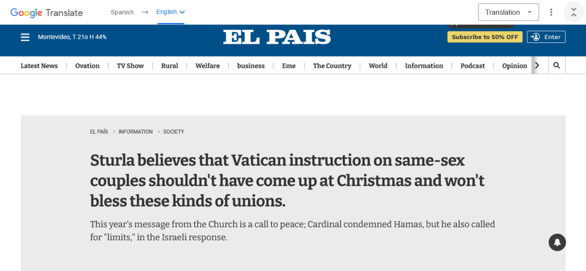 URUGUAY: Cardinal Sturla disgusted with Pope Francis’s Sodomy Propaganda at Christmas