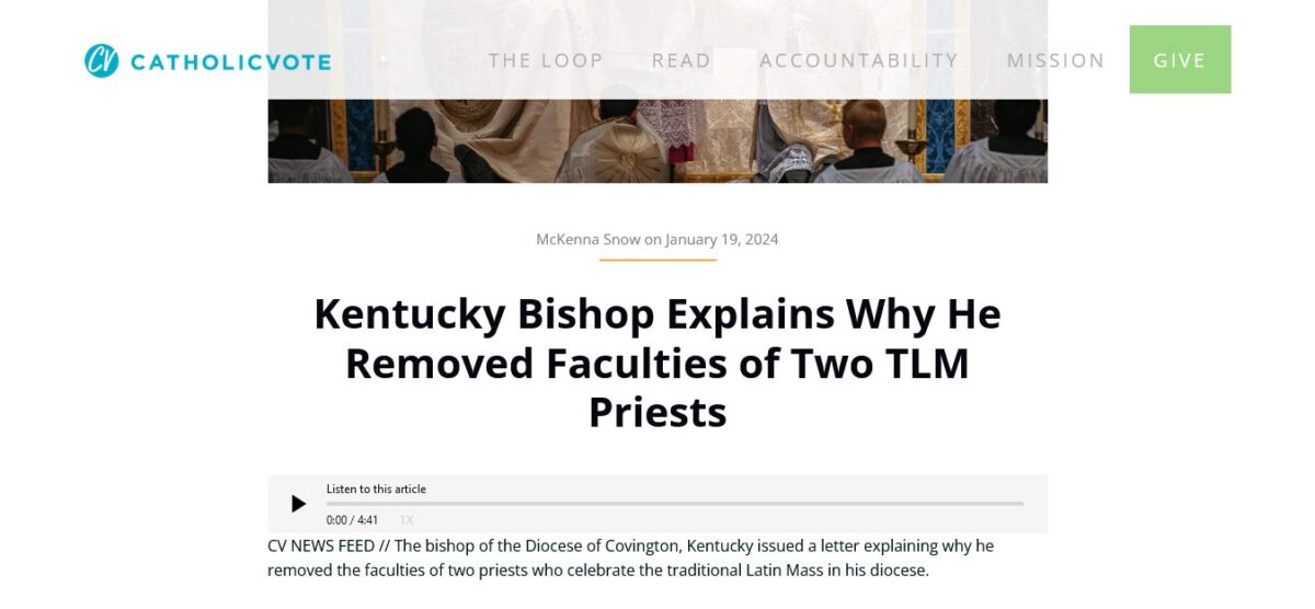 Editor’s Note: What no one seems to be noticing, is that the Bishop’s action in immediately suspending two honest and upright men as priests in his diocese actually confirms everything these priests said about the animosity of the reformers against the past: no negotiation, just destruction and annihilation.