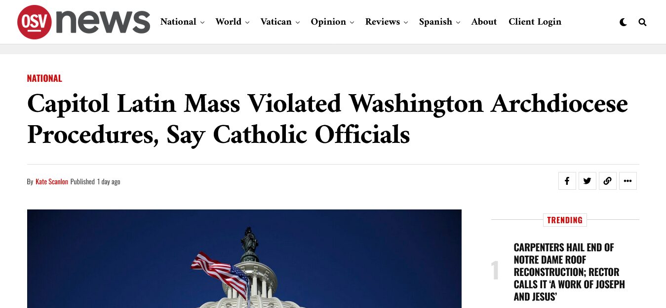Editor’s Note: The length Pope Francis’ henchmen are willing to go to suppress the ancient Roman Rite is becoming ridiculous. The Archbishop of Washington is now claiming jurisdiction over the Capitol Building in order to suppress any requests by U.S. Congressmen to have the ancient Rite of the Mass celebrated there for their spiritual nourishment. — This is Pope Francis’s war against the USA raised to the next level of conflict. It’s shameful.
