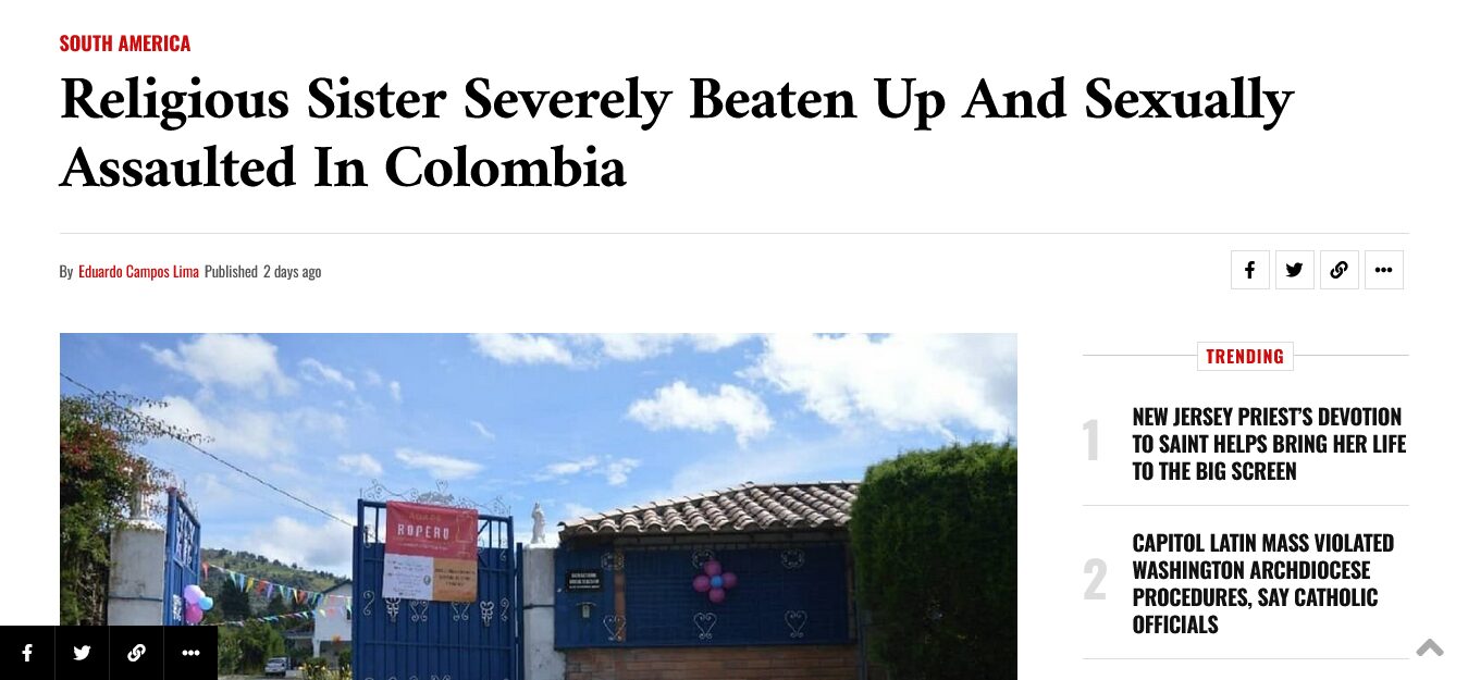 COLOMBIA: Contemplative Nun kidnapped, chained, robbed and raped