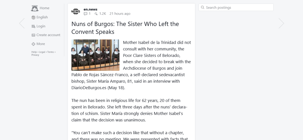 The organist of a number of nearby parishes was close to the nuns and he thinks the sedevacantist plan comes from both the mother superior and the vicar (Sor Sion). The community has both very old nuns (+80 years old) and relatively young nuns (35-60 year olds). The mother superior probably consulted with the younger ones but clearly not with the older ones.