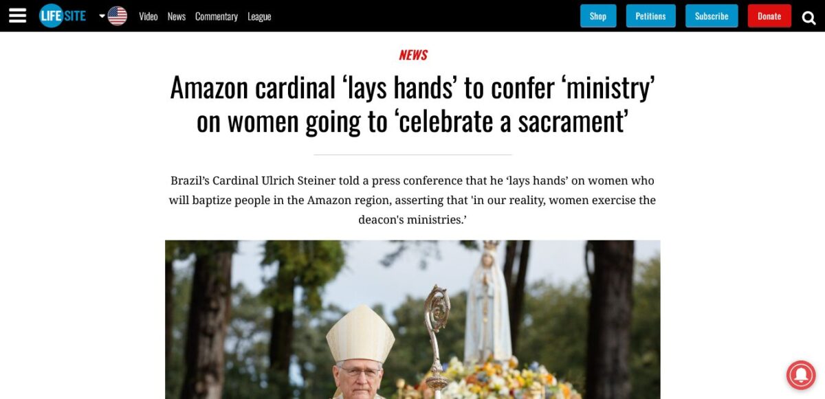 Editor’s Note: This Bishop claims to “lay hands” on women sent to baptize, as the Apostles laid hands on women. This is pure heresy. The Apostles did no such thing. He is massively gender-confused, and a public liar. He is also involved in the worse kind of sacrilegious fraud, as he is attempting to ordain women in a way that could mean “deacons”, “priests” or “bishops”. It’s a phrase concealing a studied and intentional heretical ambiguity. — Under John Paul II Bishops who did such things were suspended a divinis. He is obviously plotting with Pope Francis to change belief by changing practice, a clear Masonic-Marxist strategy. What more reason do you need to participate in the Sutri Initiative to get Pope Francis removed from office? None!