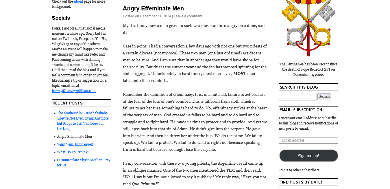 Editor’s Note: I do not know whether to shake my head in sorrow or pity, but when you read this long post by Harvey Millican attacking two priests in his own diocese, you will probably agree. He faults them for doing nothing about Pope Francis’ heresies; but then recommends they read Dr. Mazza’s writings which also does not recommend doing anything to solve the problem.