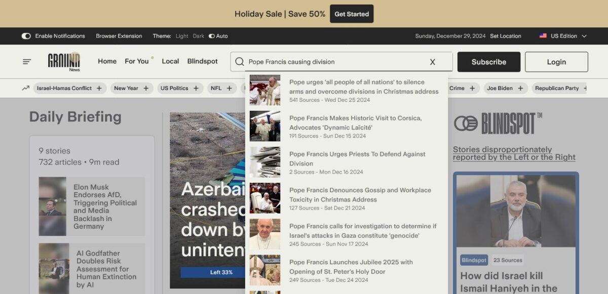 Sifting through news stories and trying to discover what is really happening in the Vatican is thus very difficult for the average Catholic who is a critical reader of the news. But one news site, Ground News, is publicly claiming, that for the critical reader of news, their site is one of the best options for such readers to find the truth.