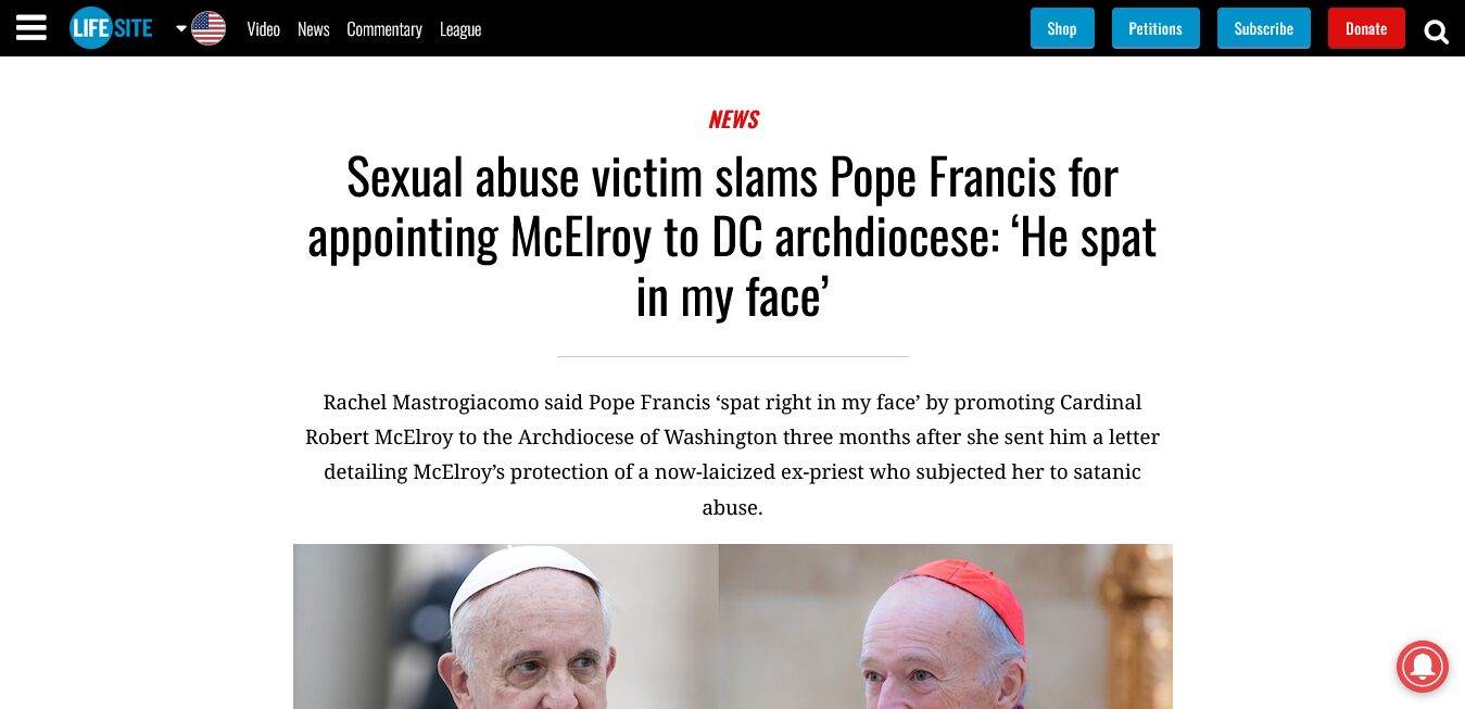 In addition, with this appointment we must ask if Pope Francis is really an occult Satanist from his youth. Here is the testimony of Rachel Mastrogiacomo who was raped during a Satanic Ritual performed by a priest, who was subsequently protected by Bishop McElroy. And after this became public, Pope Francis made him not only a Cardinal, but the Archbishop of Washington D. C., in a seeming total approval of his behavior.