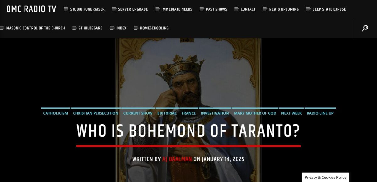 Editor’s Note: Bohemond was a Catholic man of great virtue, honor, and valor. Learn more about his life and times, to give you just one more reason not to waste your time with Catholic grifters and fake opposition.