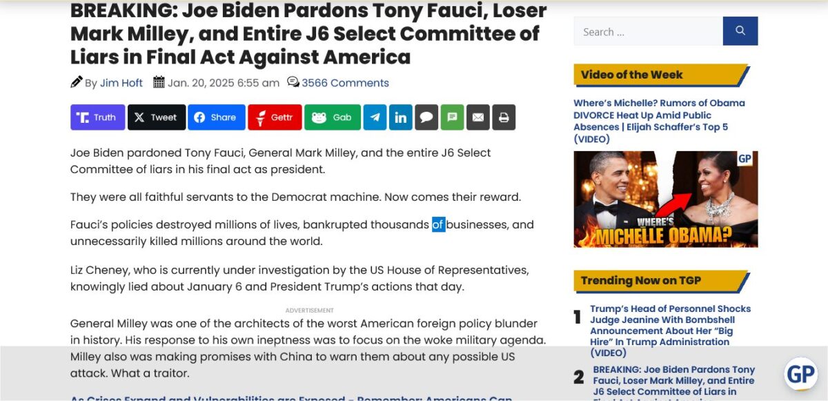 Editor’s Note: The presidential decree does not specify for what Fauci is being pardoned, thus it appears to be a dead letter, that is, without any legal value. But that it was issued surely demonstrates that a lot of people think Dr. Fauci is guilty of a lot of things. FromRome.Info will follow this story in the future to see the results.
