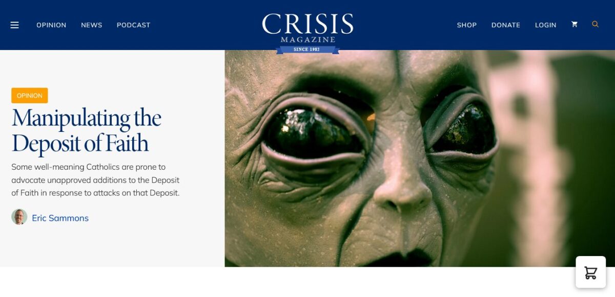It is sadly ironic that Crisis magazine’s original intention of addressing most or all of the Church’s postconciliar deceptions & distractions has, in recent times, been creating an additional crisis by departing from the Church’s Magisterium/Deposit of Faith…..!!