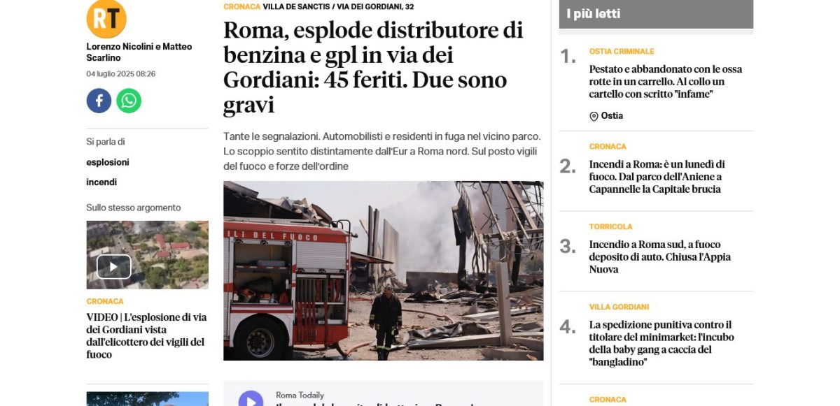 Editor’s Note: At 8:20 A.M., today, a huge explosion rocked the city of Rome. It’s source was a GPL (liquified national gas) refueling station for vehicles which use methane, located at Via dei Gordiani, n. 32, on the eastern side of the Villa de Sanctis Park, which covers a large part of the Catecombs of Saint Helen, the mother of the Emperor Constantine, who was first buried in a Mausoleum, on the southern side of what is today the Villa dei Sanctis Park. Forty-five persons were injured, two of them gravely, because the park was filled with Romans recreating. Of these, 12 were policemen, 6 were firemen, and 3 where station attendants