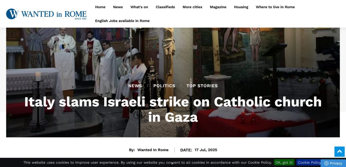 Editor’s Note: The attack on the Catholic Church seems to be in retribution for the joint statements by Christian leaders, including the Latin Patriarch of Jerusalem, denouncing the attacks on Christians by Zionists in the West Bank. — This is the godless Zionist, “Shut up or we will bomb you” strategy.