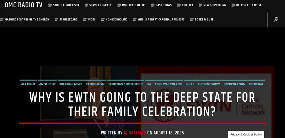 Many thanks for an excellent show, rightly critical of EWTN’s deviation from the One True Faith since the late Mother Angelica was ‘silenced’……