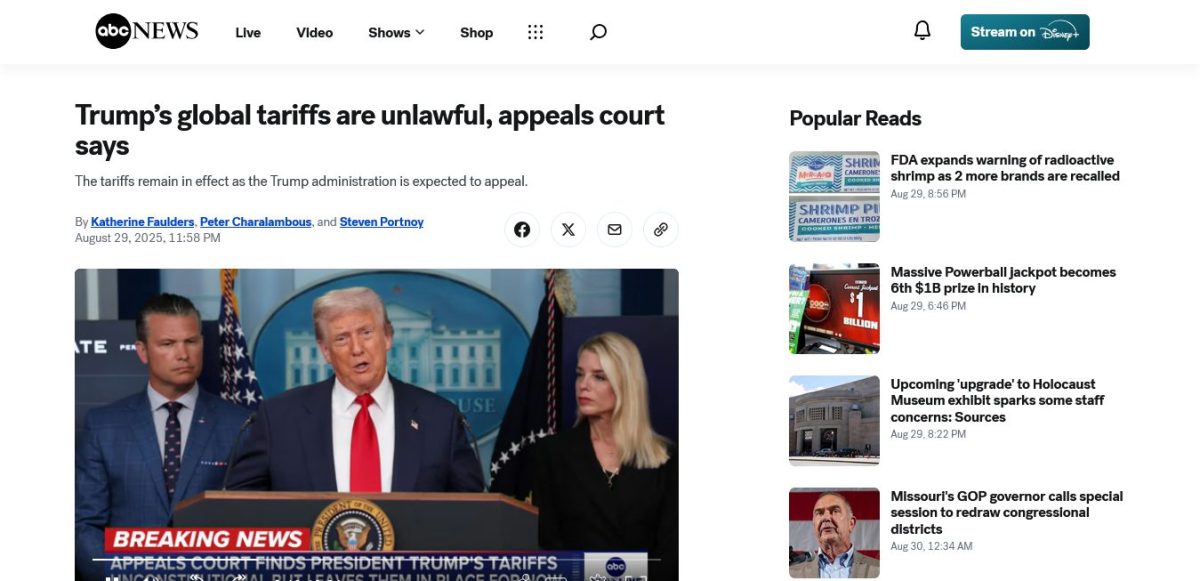 U.S. Appeals Court says Trump’s Tariffs are unlawful