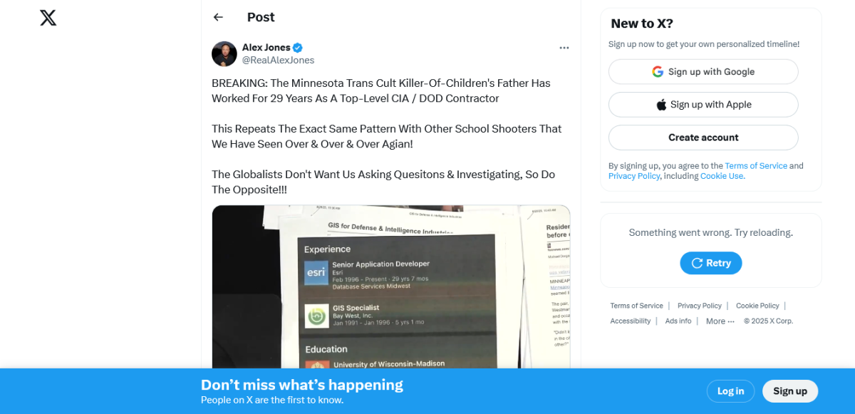 Click the image to see the short video from Alex Jones on his X Account.