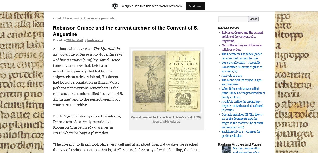 Editor’s Note: The famous literary character of Danie Defoe’s adventure in the southern seas, Robinson Crusoe, is described by Defoe as a Roman Catholic — a truth that has been hidden in all popular descriptions of the character. Read the fascinating story above, in Italian, or use Chrome or Firefox browser’s innate translation function, to read it in your native language.