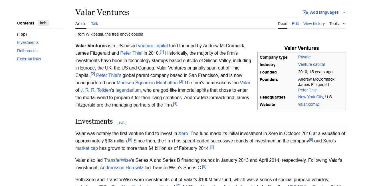 Then, what is Peter Thiel’s, Valar Ventures?