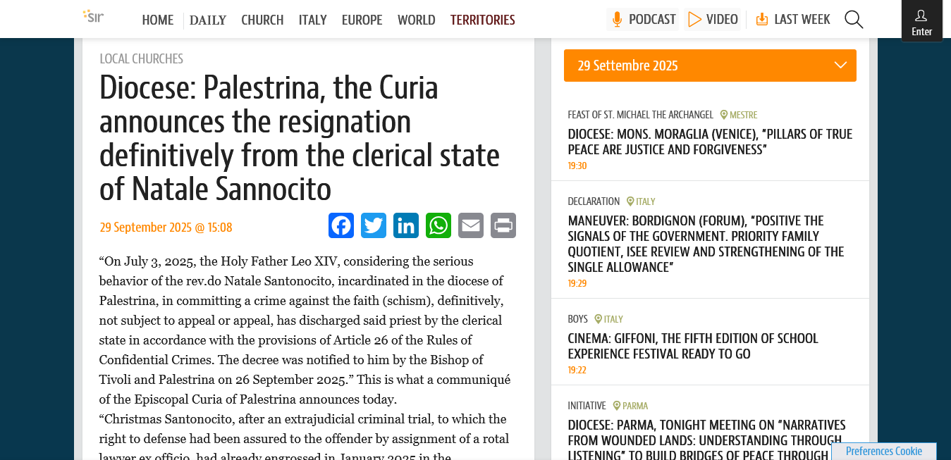 The Diocese of Palestrina says that Father Santonocito deserves to be expelled from the priesthood for “not recognizing the legitimacy” of the election of Leo XIV.