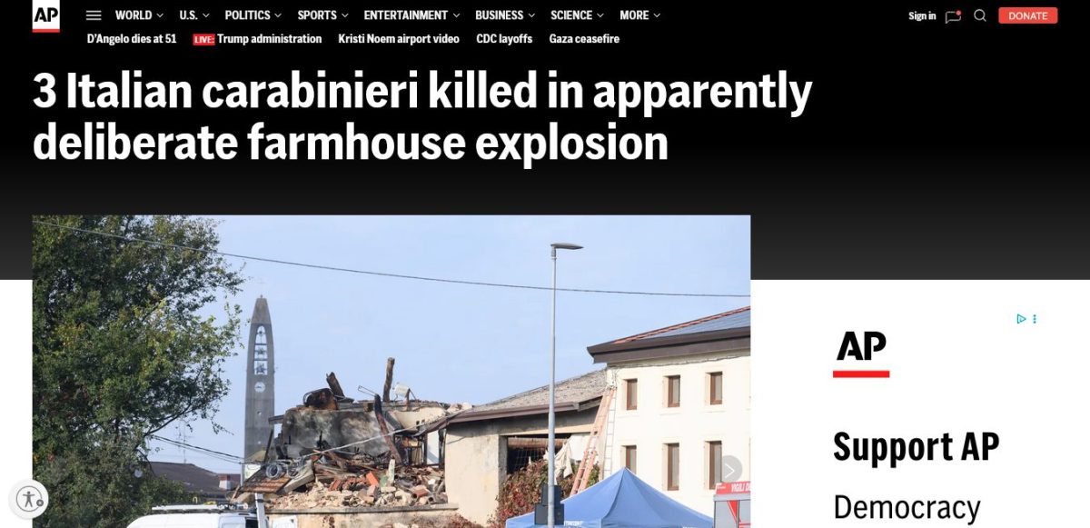 ITALY: 3 Carabinieri Killed, numerous injured in Farmer Stand-off