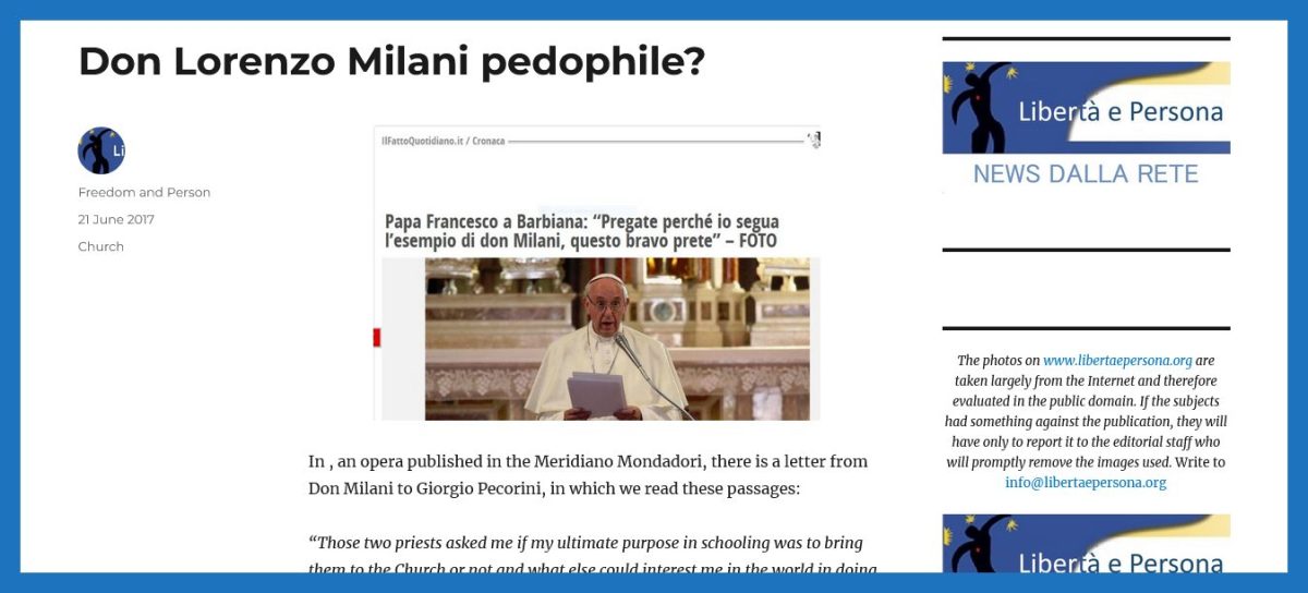 Editor’s Note: Click above to read the discourse by Cardinal Prevost who praises Father Loreno Milani, a pornographer and pedophile: