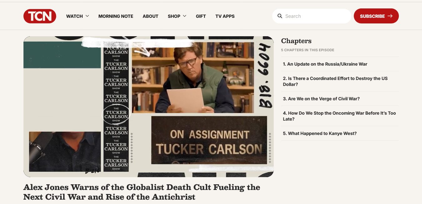 Editor’s Note: Tucker and Jones ignore the fact that Russia started the war, and what they say about the Ukraine is total lies; but what they say about the Democrat Party in the USA is more credible, beginning at about 25 minutes. — This show aired yesterday.