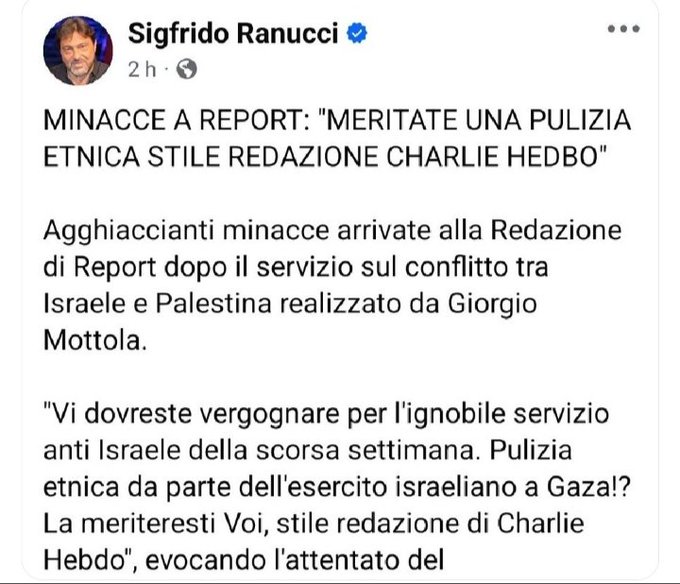 Chilling threats have been sent to the Editorial Staff of the ‘Report’ after our report about the conflict between Israel and Palestine, by Giorgio Mottola.