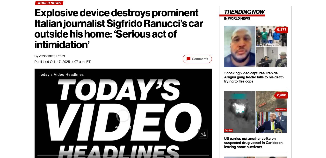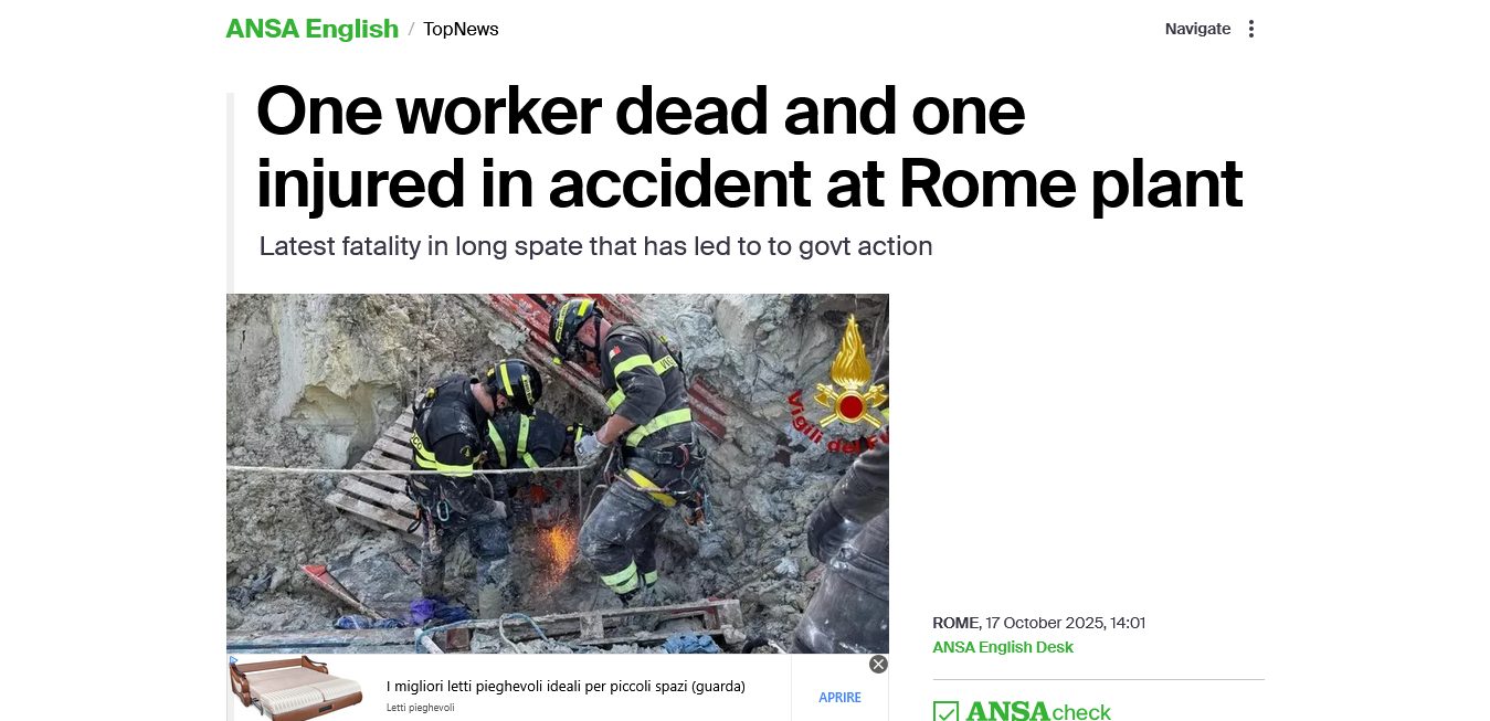 In unrelated news, one worker was killed by being crushed to death, and another gravely injured at the Defense Contractor, Elt Elettronica, this morning, October 17, 2025, north of Rome: though the report from ANSA conceals the identity of the company and its clients. ANSA is the news agency which spread the fake report about the Renunciation of Pope Benedict XVI.