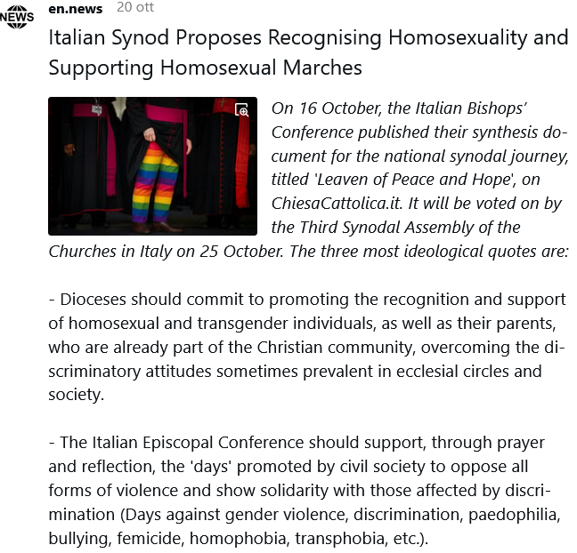In related news, the Italian Episcopal Conference, under the leadership of Prevost, is scheduled to vote in favor of publicly accepting the LGBTQ Agenda and promoting its activities in Catholic Churches throughout Italy. — It has been often insinuated, implied and speculated that “Catholic” voices which insisted Benedict XVI resigned and that Leo XIV was validly elected are in favor of the ultimate agenda of the St. Gallen Mafia. This news will only fire such speculation.