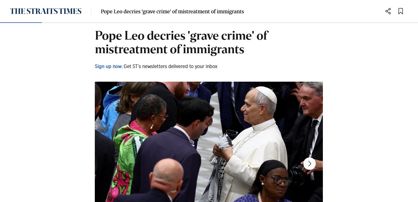 Editor’s Note: When Marxists speak, you have to decode what they intend to signify by the buzz words they use. That is why the Straits Times, which quotes the actual words of the illegally elected Leo XIV — a juridical fact which makes him an “antipope”, that is, a false claimant to the office of Bishop of Rome — whereas, here at FromRome.Info, I nearly always place a leader on the article which explains the meaning of the news in plain language, as a Christian ought to do.