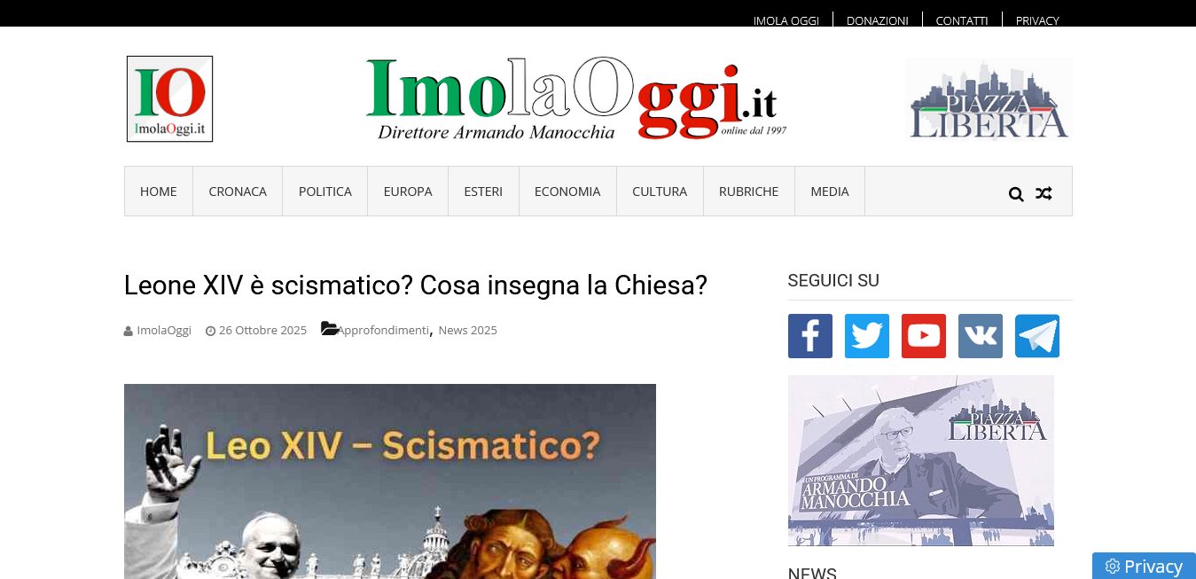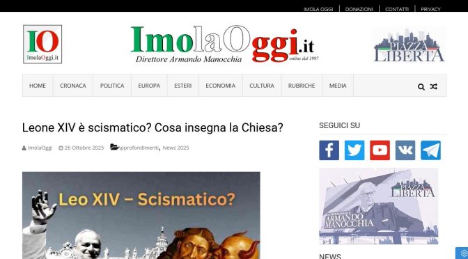 I thank Armando Manocchia, a true anti-globalist, for the favor today of republishing in Italian, my original article on the Leonine Schism, which you can find in English, HERE, which merely cites Papal Teaching on what is an antipope and what are the legal consequences of being in communion with an antipope, and how to elect a Catholic pope when an antipope controls Rome.