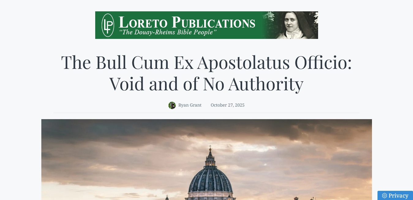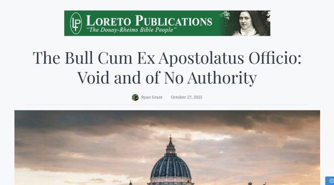 In the above article, published on October 27, 2025, Mr. Ryan Grant, attempts to show that this Bull no longer has any force of law, even in the particular of its censure of the election of a heretic as pope.