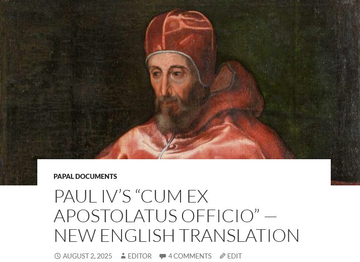 Back in May of this year of Our Lord, 2025, the first argument I moved against the validity of the election of Cardinal Prevost, was that the election of a man who is found to have deviated from the Catholic Faith before his election by the Cardinals was declared ipso facto invalid by the Bull of Pope Paul IV, Cum ex apostolatus officio.