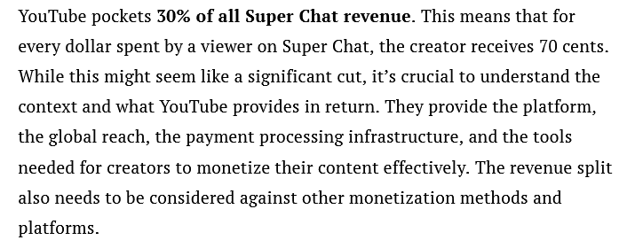 To put this in perspective, in September of 2025, Candace Owens received, reportedly, $130,000 in SuperChats, with about 5 million followers. Thus, YouTube might have made as much as $39,000 in revenue from her fans in that month alone. — Now there is nothing wrong with running a show and getting paid by your fans for informing or entertaining them, but just remember that is what is happening.
