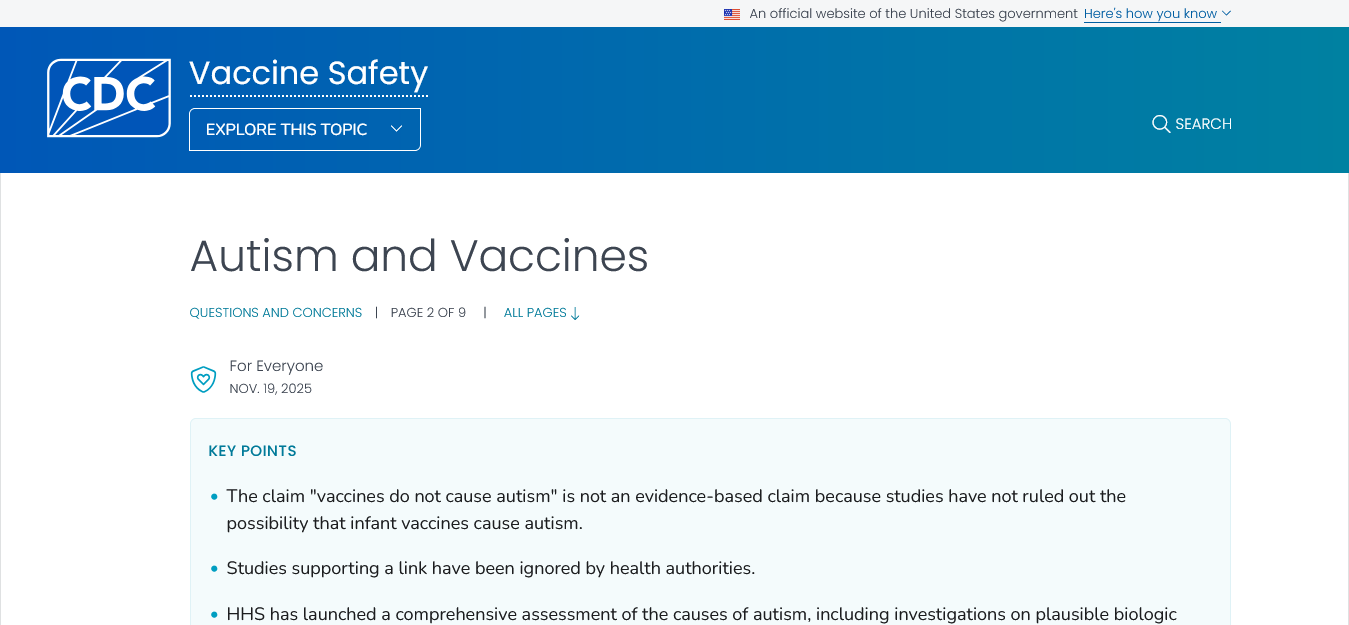 Editor’s Note: In perhaps one of the biggest medical turn-a-rounds in U.S. History, the Center for Disease Control has rejected the Big Pharma lie pushed for decades that vaccines are safe and effective and now admits that the MSM and Big Pharma mantra that “Vaccines do not cause autism” was not a science based statement. — That was perhaps the biggest Lie pushed by world-governments since my childhood, which has resulted in 10s of millions of maimed individuals world-wide. — In the U.S. alone, today, from birth to adulthood, a child is required to take 72 vaccines, which is devastating to their health and immune system. This 180 degree flip of the CDC will be, God willing, the beginning of the end of the mythology of vaccination as a sound medical procedure.